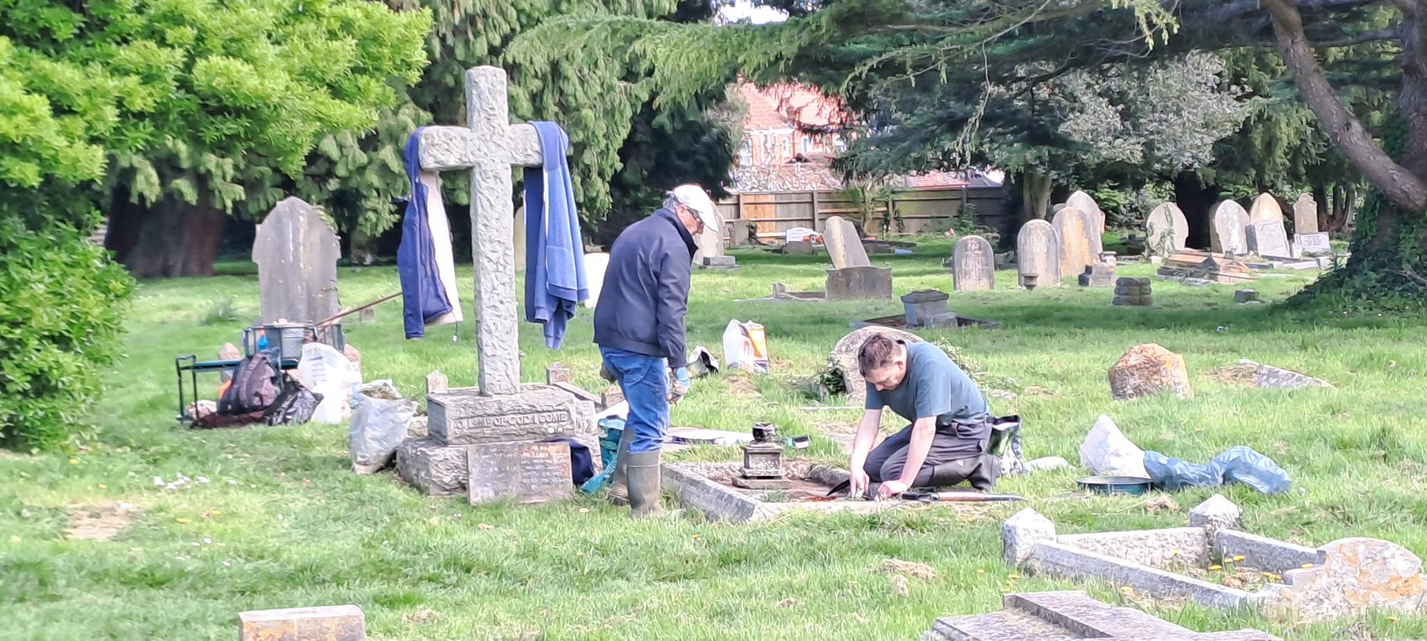 Only the third working day in the cemetery this year (19 April 2026), never have we had it so wet that we have been unable to attend and work in the cemetery for so long.
