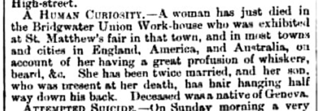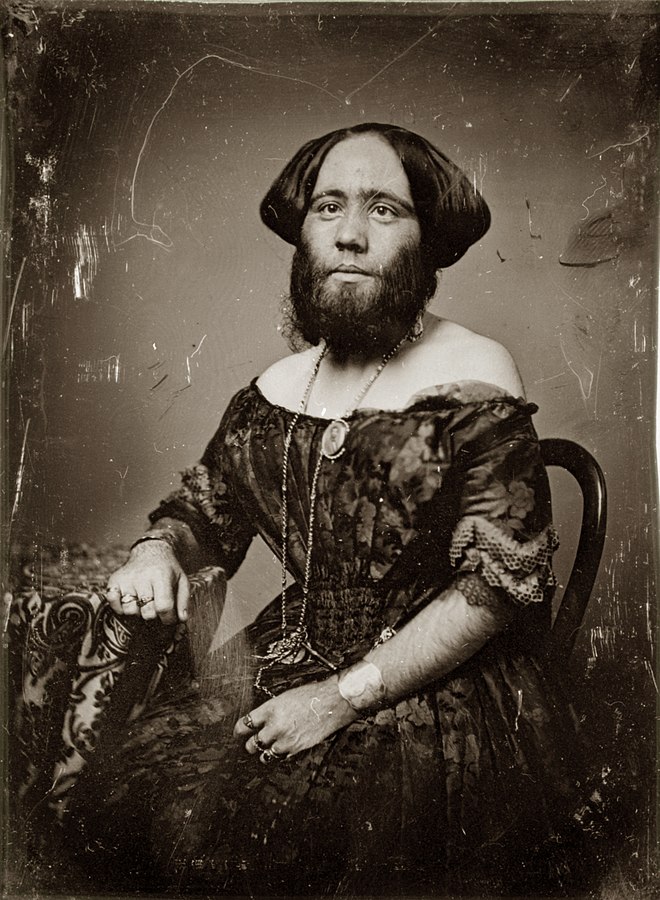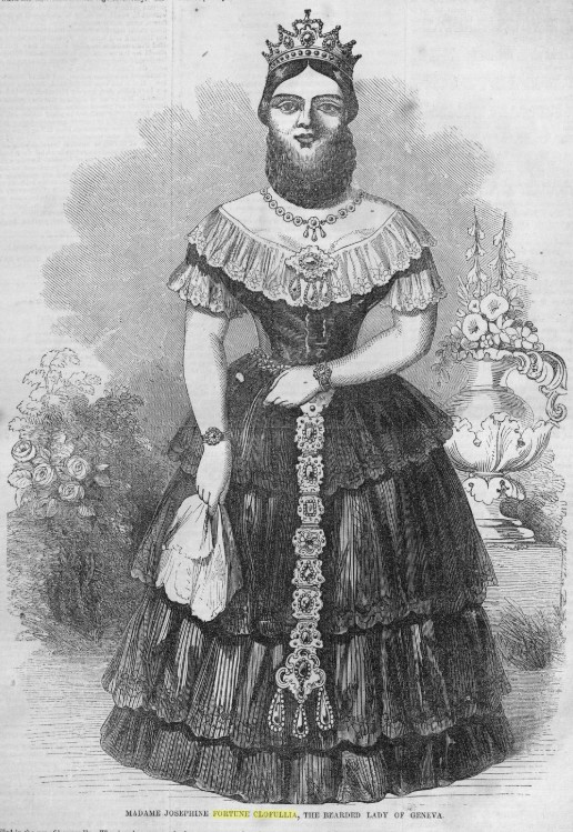 [x] There were several bearded ladies in the USA, a contemporary one was Julia Pastrana, who also had hypertrichosis, but was referred to as ‘the bear woman’.